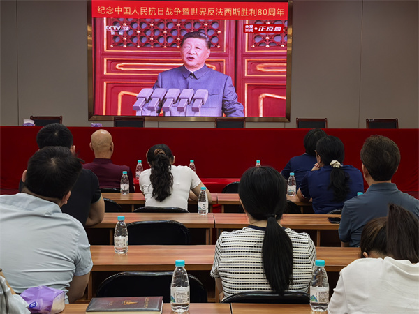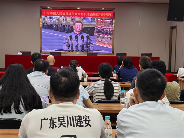 9月3日上午,公司總部全體員工在公司禮堂集中觀看紀念中國人民抗日戰(zhàn)爭暨世界反法西斯戰(zhàn)爭勝利80周年大會直播。